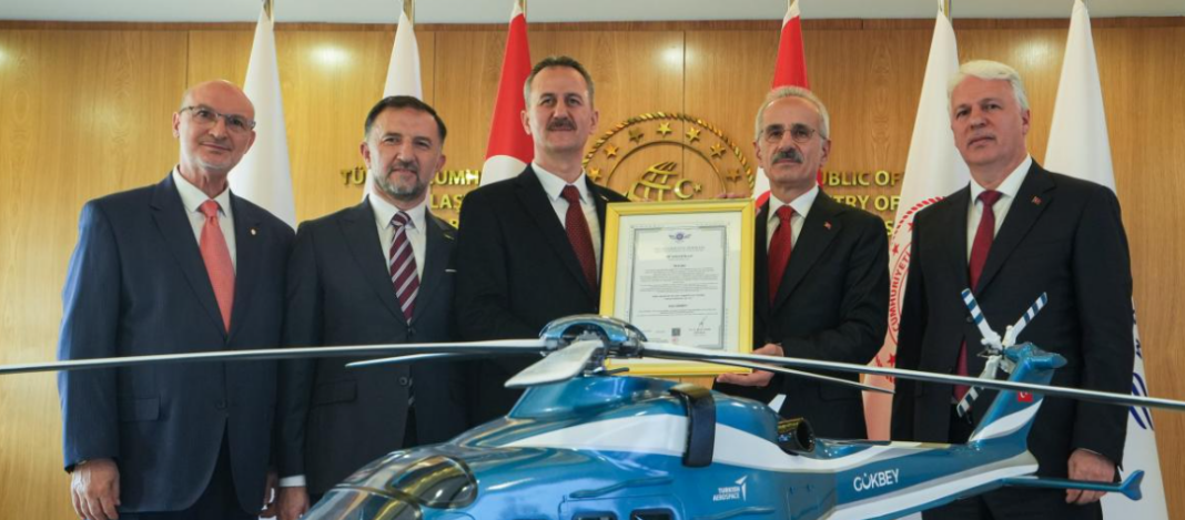 Ulaştırma ve Altyapı Bakanı Abdulkadir Uraloğlu, GÖKBEY Helikopteri’nin Hava Aracı, Motor veya Pervane Tasarımının ve Performansının Uçuşa Elverişlilik Sertifikasını, Ulaştırma ve Altyapı Bakanlığında düzenlenen törenle Başkan Görgün’e teslim etti.