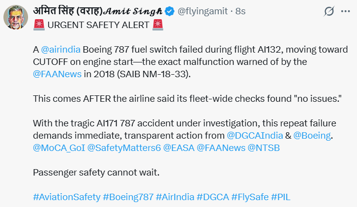 Bu konu dikkat çekiyor çünkü Air India’ya ait AI171 sefer sayılı Boeing 787 tipi uçak, 12 Haziran 2025’te Ahmedabad’da kalkıştan kısa süre sonra düşmüş ve 260 kişinin ölümüne neden olmuştu.