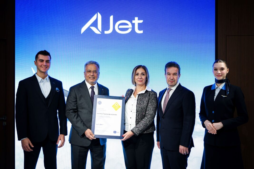 Bolat, “Hazırlık süreci ve denetimde gösterilen yüksek performans, AJet’imizin güçlü emniyet ve güvenlik kültürünü bir kez daha ortaya koydu. IOSA sertifikasını almasıyla AJet’in Uluslararası Hava Taşımacılığı Birliği (IATA) üyelik süreci resmen başladı” dedi. IOSA Sertifikası, IATA Türkiye Bölge Müdürü Funda Çalışır tarafından Türk Hava Yolları ve AJet Yönetim Kurulu Başkanı Ahmet Bolat’a törenle verildi.