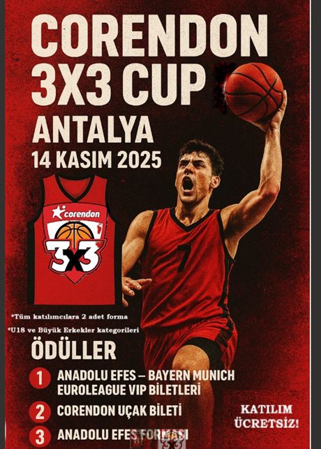 Corendon 3×3 Cup, FIBA onaylı formatta ve TBF hakemleri yönetiminde düzenlenecek maçlarla, Antalya’da basketbol tutkunlarını bir araya getirecek.