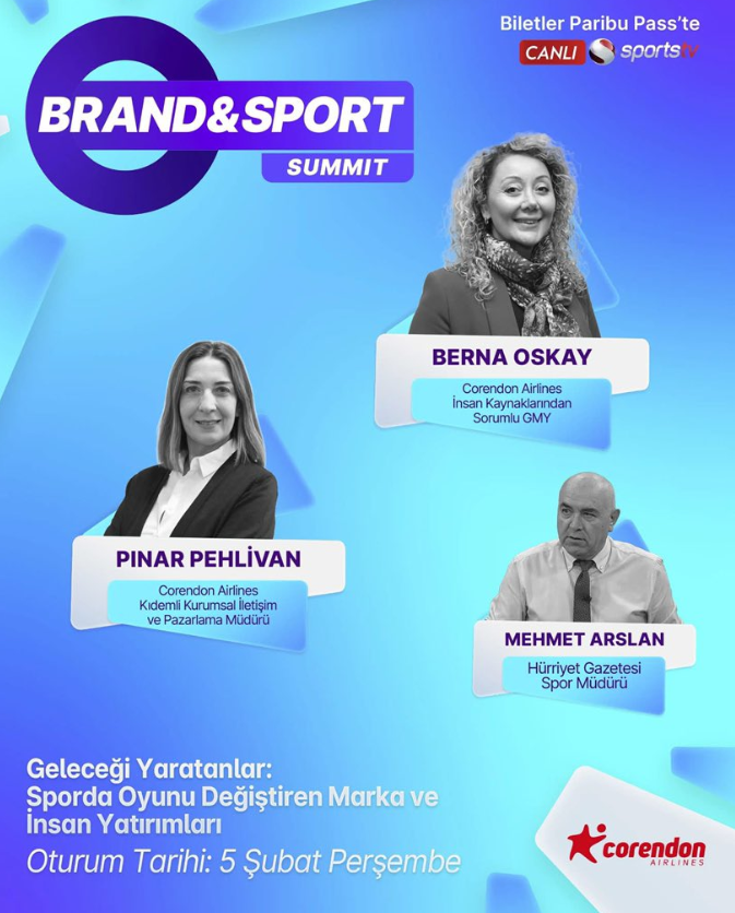 “Geleceği Yaratanlar: Sporda Oyunu Değiştiren Marka ve İnsan Yatırımları” konulu oturuma; Corendon Airlines’in, spor yatırımlarında kurum kültürü ve insan kaynağının önemini marka profesyonelleri; Corendon Airlines Kıdemli Kurumsal İletişim ve Pazarlama Müdürü Pınar PEHLİVAN, Corendon Airlines İnsan Kaynaklarından Sorumlu Genel Müdür Yardımcısı Berna OSKAY ve Hürriyet Gazetesi Spor Müdürü Mehmet ARSLAN anlatıyor.