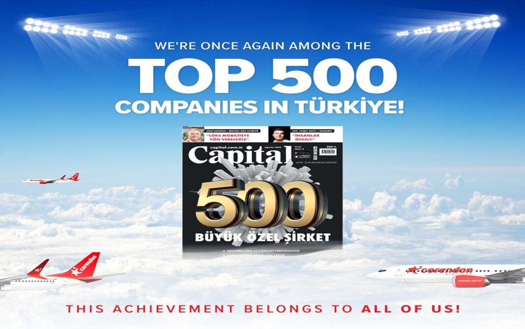 Avrupa’nın ve Türkiye’nin öncü havayolu şirketlerinden Corendon Airlines, 20. yılını Capital 500 listesinde yükselerek taçlandırdı. 2011 yılında ilk kez girdiği Capital 500 listesinde aralıksız olarak yer almayı başaran hava yolu şirketi, yıldan yıla gösterdiği performansla listede üst sıralara doğru ilerleyerek Türkiye ekonomisine değer katan lider kuruluşlar arasında konumunu sağlamlaştırdı.