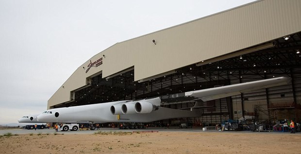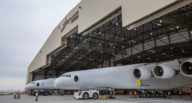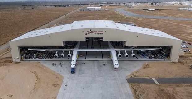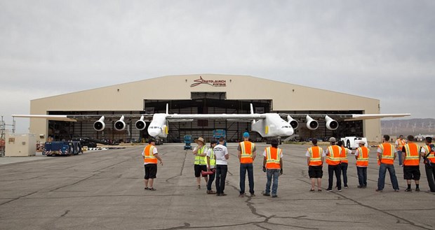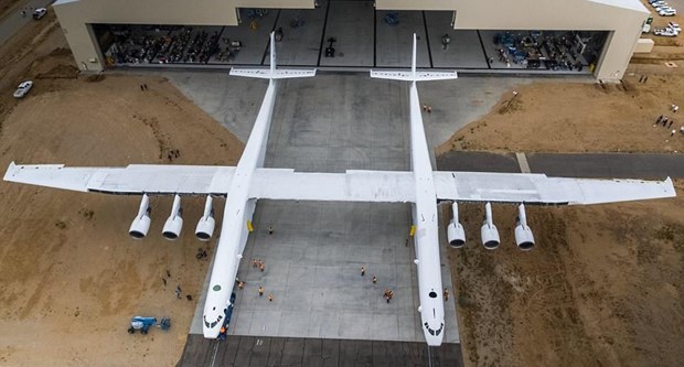Kanat açıklığı bir futbol sahasından daha geniş olan dünyanın en büyük uçağı Stratolaunch hangarından çıkarıldı.