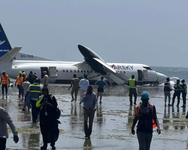 Somali’nin başkenti Mogadişu kentindeki havalimanından kalktıktan kısa süre sonra StarSky Aviation’a ait 36 yaşındaki Fokker 50 uçağı, kalkıştan 15 dakika sonra bir ‘arıza’ yaşadı. Kalkış yaptığı havalimanına dönen uçak acil iniş yaparken pistten çıkarak kıyı şeridinde durdu.