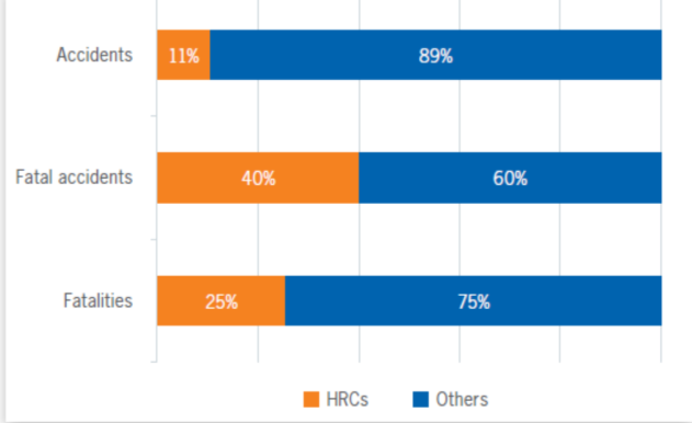 • RI ile ilgili 1 kaza ölümlü yaralanmalara neden olmuş ve toplam kazaların %1’ini, toplam ölümlü kazaların %10’unu ve toplam ölümlerin %2’sini oluşturmuştur.