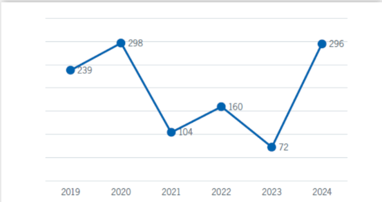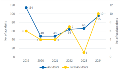 2019-2024 yılları arasında, kaza sayısı açısından kaydedilen en yüksek sayı, 114 kaza ile 2019 yılında gerçekleşti. Kaza sayısı hem 2020 hem de 2021 yıllarında önemli ölçüde