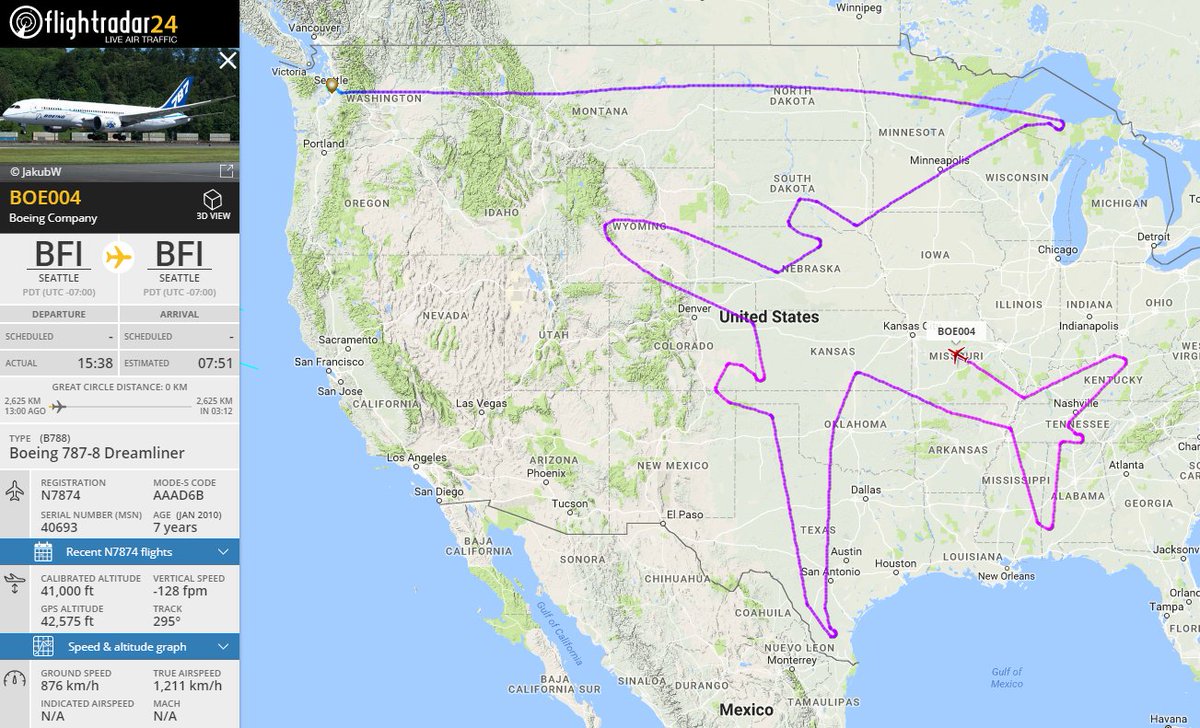 Haritaya bakıldığında, uçağın alışılmışın dışında rotasının bir yolcu uçağı şekli çizdiği görüldü.