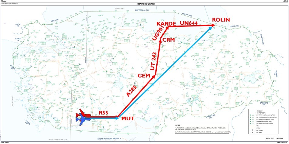 “Hava araçlarına, belirlenen giriş ve çıkış noktaları arasında klasik uçuş rotalarına bağlı kalmaksızın serbestçe uçuş planlama imkânı tanıyan FRA; uçuş sürelerinde kısalma, yakıt tasarrufu ve karbon salınımının azaltılması gibi hem ekonomik hem de çevresel alanlarda büyük kazanımlar sağlayacak.”