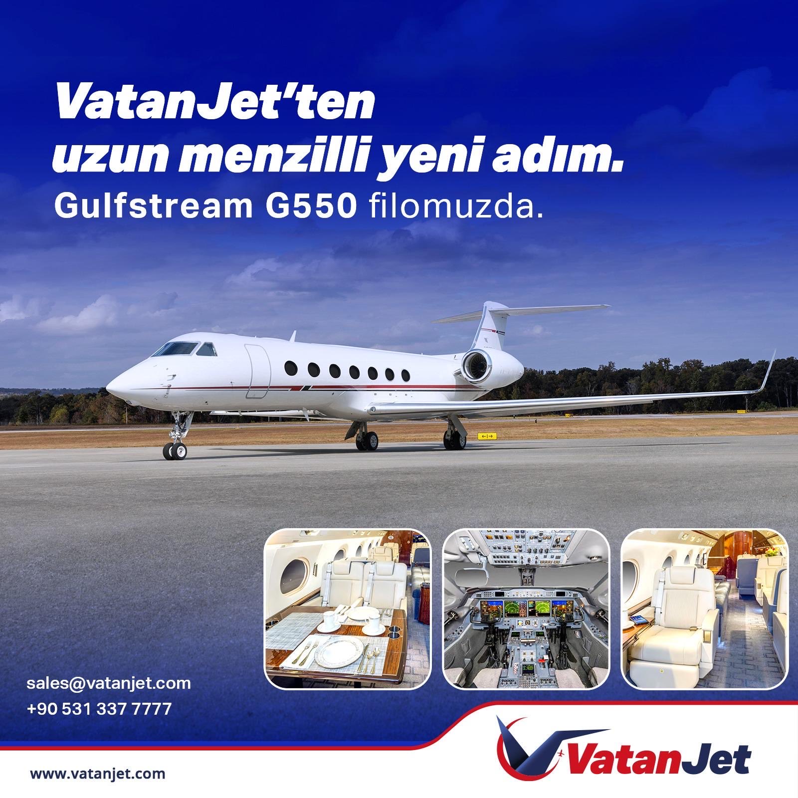 Yeni nesil teknolojik donanımı, geniş ve konforlu kabin yapısı ve yüksek menzil kapasitesi ile kıtalararası uçuşlara olanak tanıyan Gulfstream G550, VatanJet’in mevcut orta menzilli operasyonuna uzun menzilli operasyonları da katarak hizmet kalitesini önemli ölçüde artıracak ve yolculara daha güvenli, esnek ve ayrıcalıklı bir uçuş deneyimi sunma hedefinin önemli bir parçası olacak.